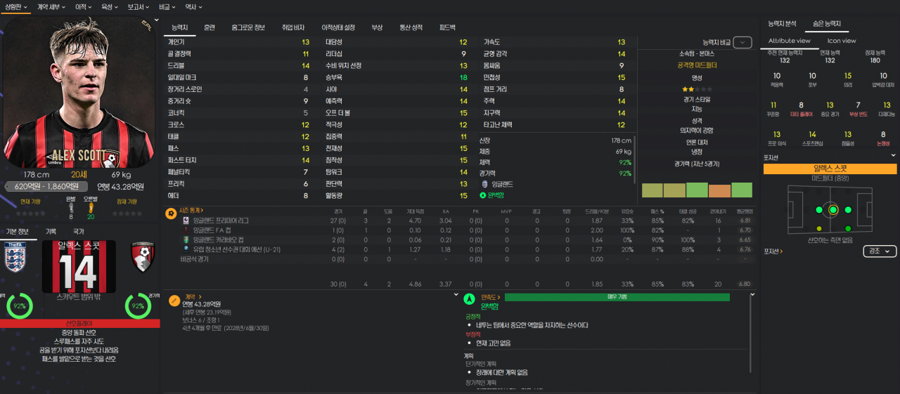 소속: 본머스 포텐 -9 포텐 (150~180)