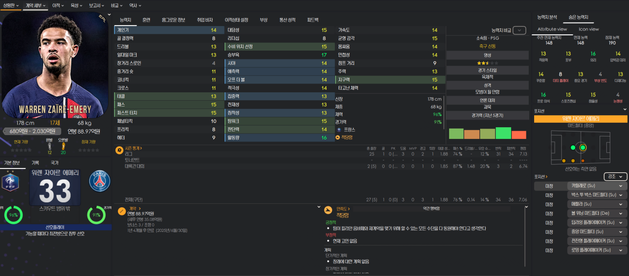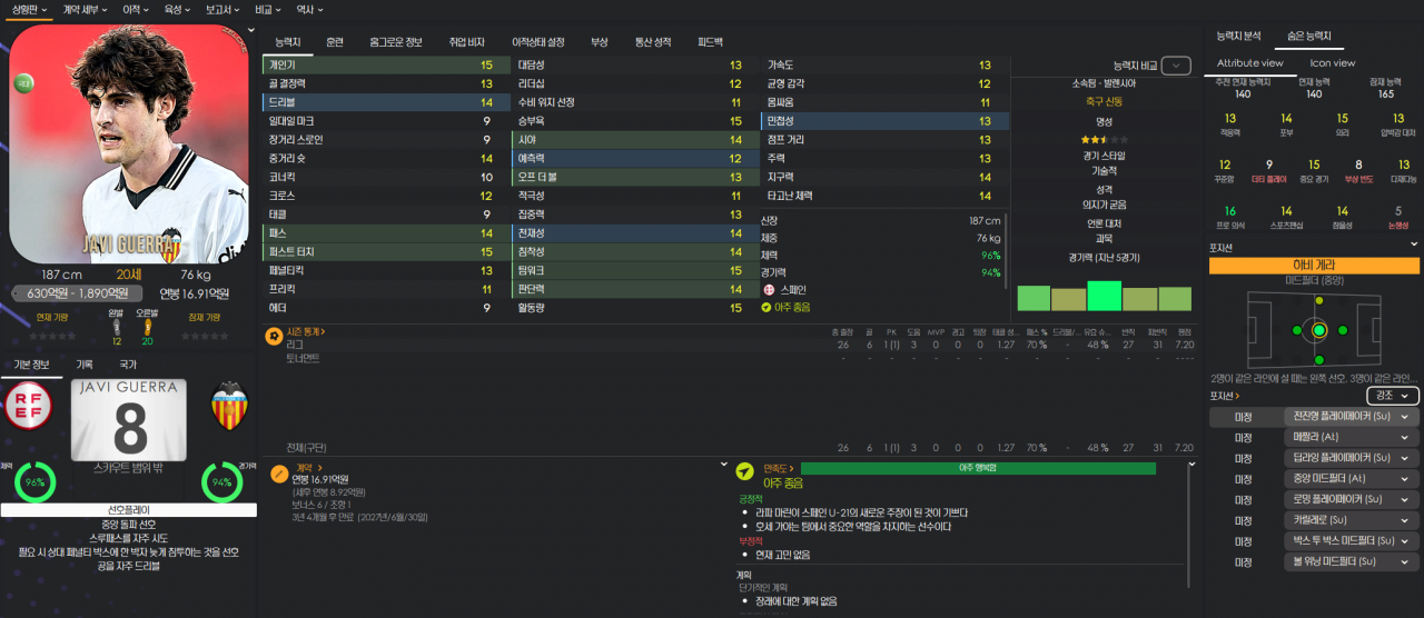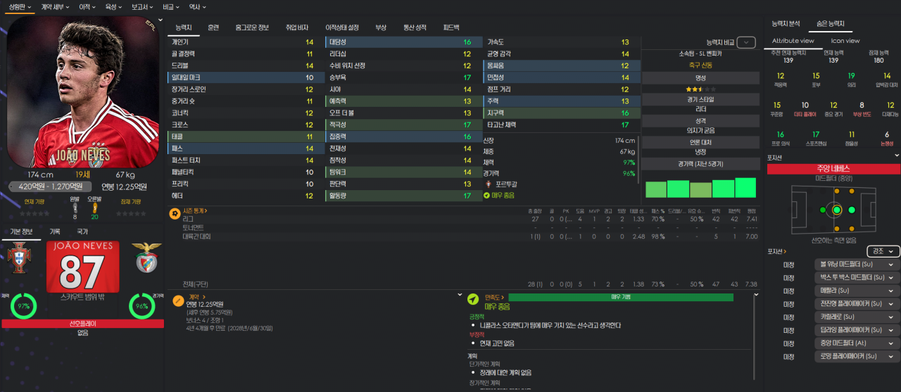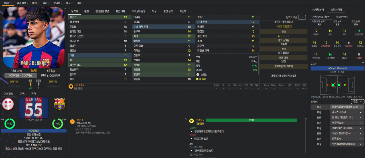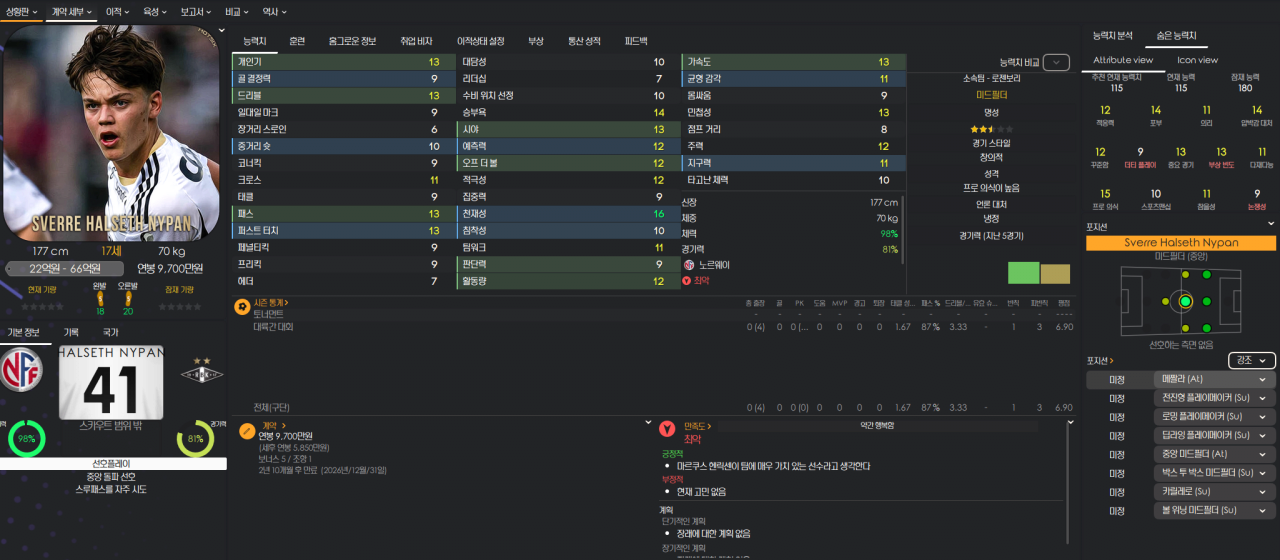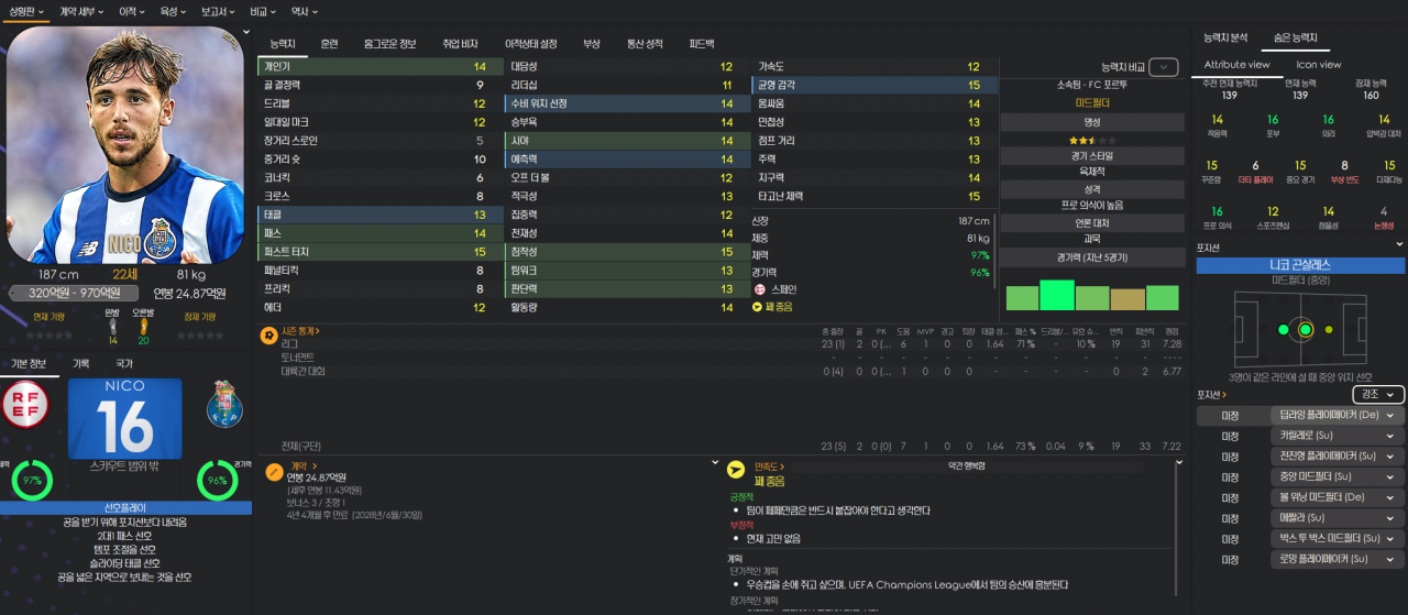 이 선수가 있을 정도로 적폐 육각형 미드필더고 개인적으로 fm24 모든 유망주 통틀어도