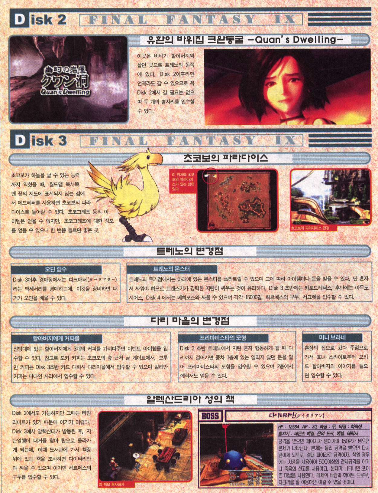 스토리 공략 알렉산드리아 알렉산드리아 성 마의 숲 얼음의 동굴 다리 마을 다리 마을 지하 린드블룸 초코보의 숲, 쿠족의 늪 기자마르크의 동굴 브루메시아 밤의 도시 토레노 크레이라 전편,